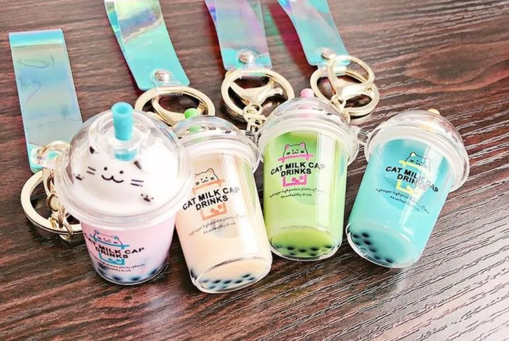 Móc khóa nước hình ly trà sữa