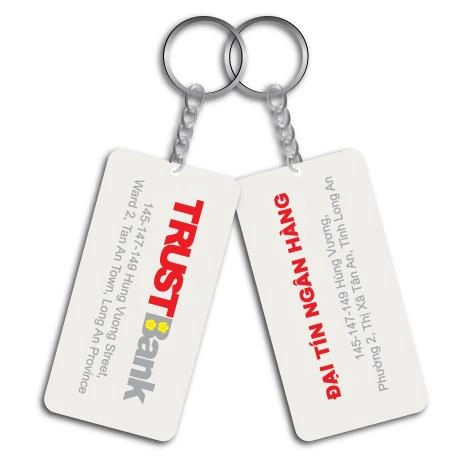 | Nhựa cứng/PVC | – In màu sắc phức tạp, chi phí thấp – Giá tốt khi số lượng từ 200 chiếc (~12,000đ/chiếc) – Marketing hiệu quả cho startup, quán cafe, cửa hàng nhỏ | – Độ bền thấp, nhất là tại điểm nối vòng khoá | – Chọn loại có lỗ khoá gia cố kim loại hoặc tăng độ dày chất liệu 3-4mm để bền hơn |
