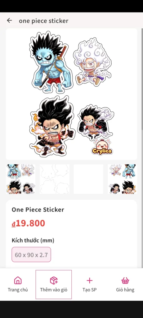 Thiết kế sản phẩm trên mobile (cả android và iOS) tại: https://mobile.crylica.com