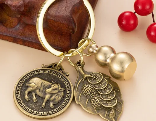 • Tuổi Sửu (Trâu): Đại diện cho sự chăm chỉ, bền bỉ và thành công vững chắc. Một chiếc móc khóa hình trâu đồng mang lại năng lượng ổn định, giúp công việc thuận lợi.
